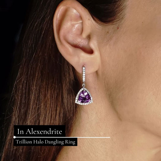 Trillion Halo Alexandrite Dangle Earrings
